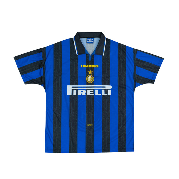 Iconic Inter shirt worn during a successful campaign which saw the Nerazzurri reach the final of the UEFA cup and finish 3rd in Serie A.