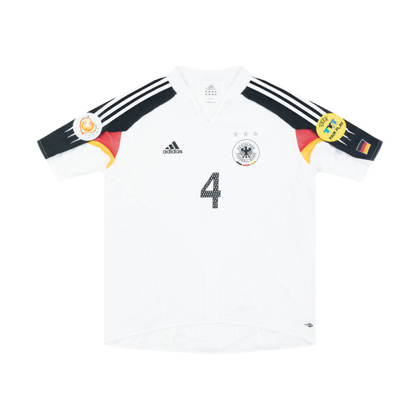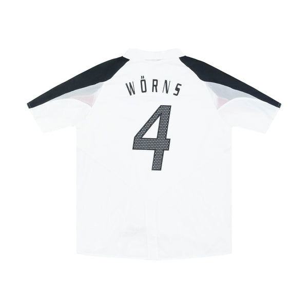 Matchworn Christian Wörns Germany home shirt worn at Euro 2004 for the 0-0 group stage game against Latvia on 19th June 2004. The defender played the full 90 minutes keeping a clean sheet. This draw in particular was costly for the team as they were eliminated in the group stage after failing to win a game.