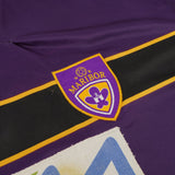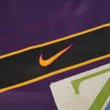 This version of the shirt has the player issue features which differ from the replica versions, including embroidered team crest, machine stitched front sponsor and correct sized player name and number. Shirt does have repaired neckline and loose stitching to collar on right shoulder.