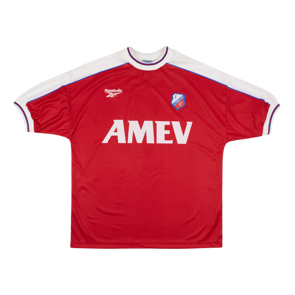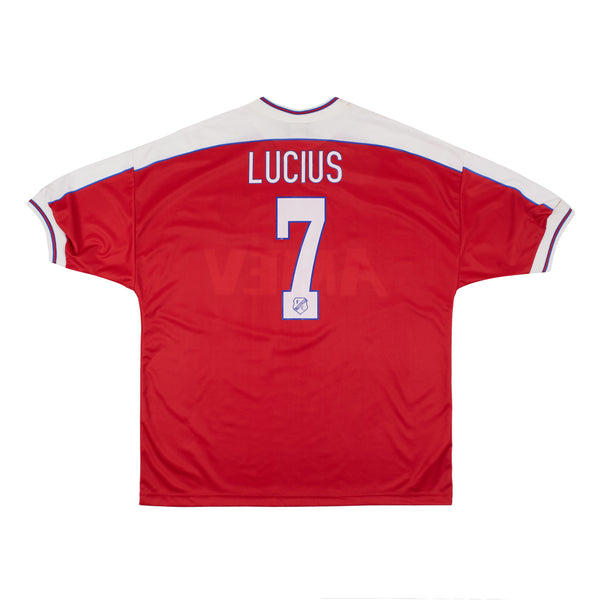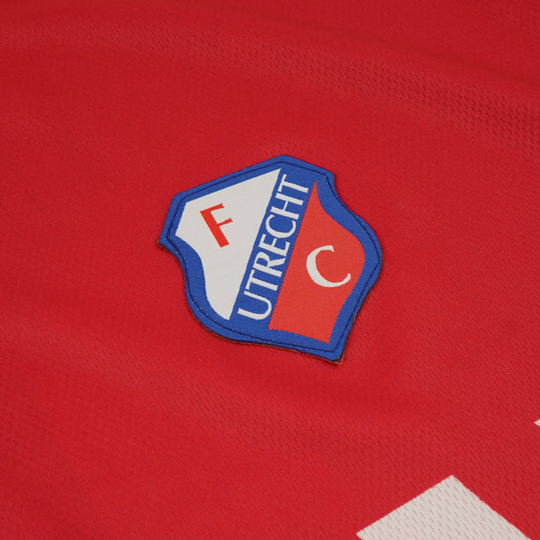 Match issue FC Utrecht home shirt, issued to Theo Lucius as part of the club's Eredivisie  campaign in the 1998/99 season. This version of the shirt has the player issue features which differ from the replica versions, including correct sized player name/number, sublimated sponsor and embroidered club crest. Small amount of colour run to player name/number and embossed manufacturer logo. Small amount of loose stitching and material to right sleeve close to cuff.