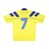 Match issue version of shirt, issued to the squad as part of the 1992-94 seasons. Manufacturer logo is embroidered. Club sponsor is sublimated. Player number is Polyflex and heat applied with signs of cracking and wear. No pulls or bobbles, few small marks to both sides of shirts. Colours and stitching in excellent condition.