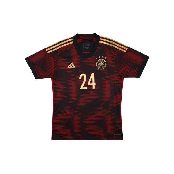 Worn at the 2022 World Cup where Germany crashed out in the group stages, finishing 3rd on goal difference after 1 win, 1 draw and a loss. Both Niclas Füllkrug and Kai Havertz scored twice for Die Mannschaft at the tournament.