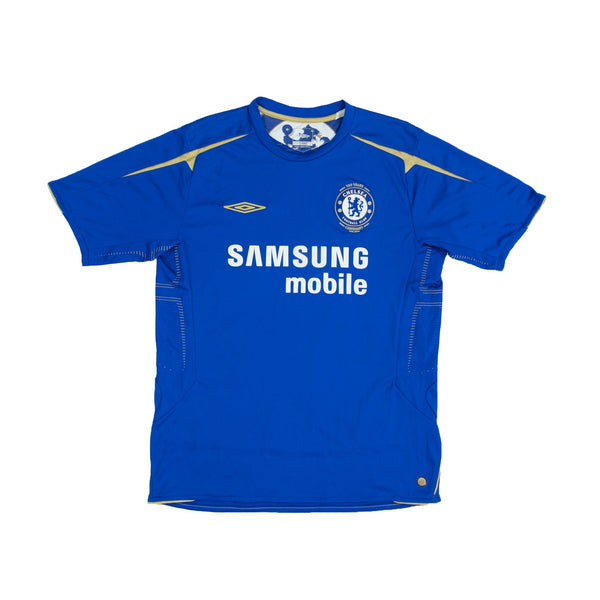 Created for the club's centenary, this classy Umbro design was only worn for one season before the club switched to Adidas. The gold accents celebrated the clubs title from the previous season and Jose Mourinho continued Chelsea's new found dominance by leading the Blues to a second consecutive title.