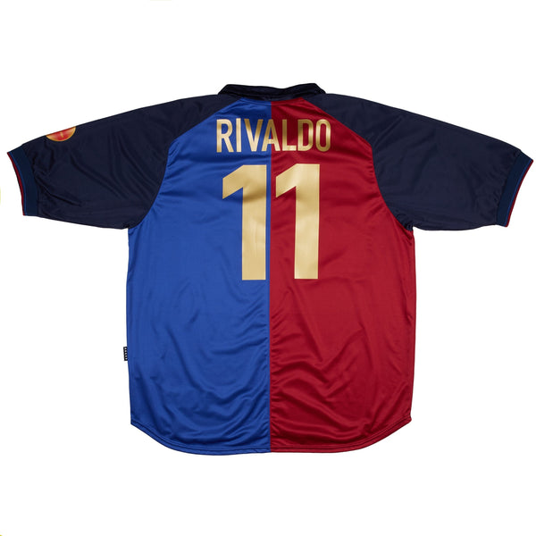 BARCELONA 1999-00 CENTENARY HOME SHIRT - RIVALDO 11 - S