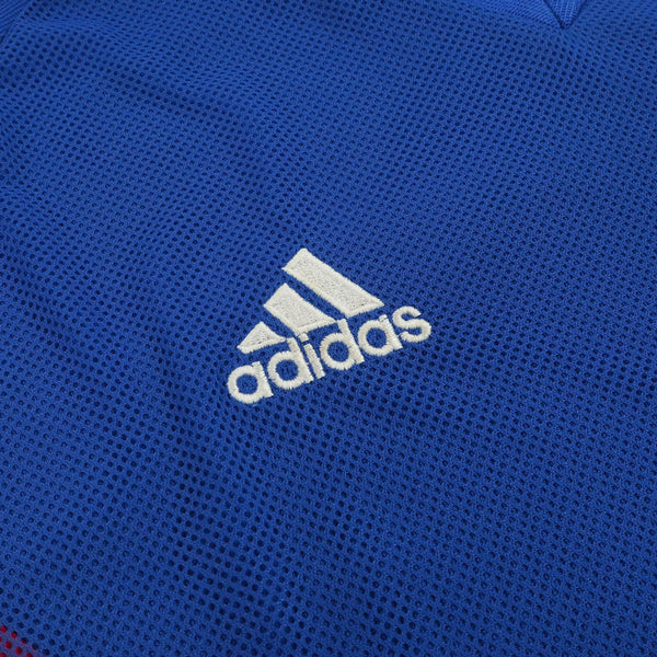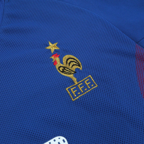 As worn at the 2002 World Cup where France set out to defend their title as world Champions having won the tournament 4 years prior. Much to everyone's surprise they didn't win a single game as 2 defeats and a draw saw them crash out in the group stages.