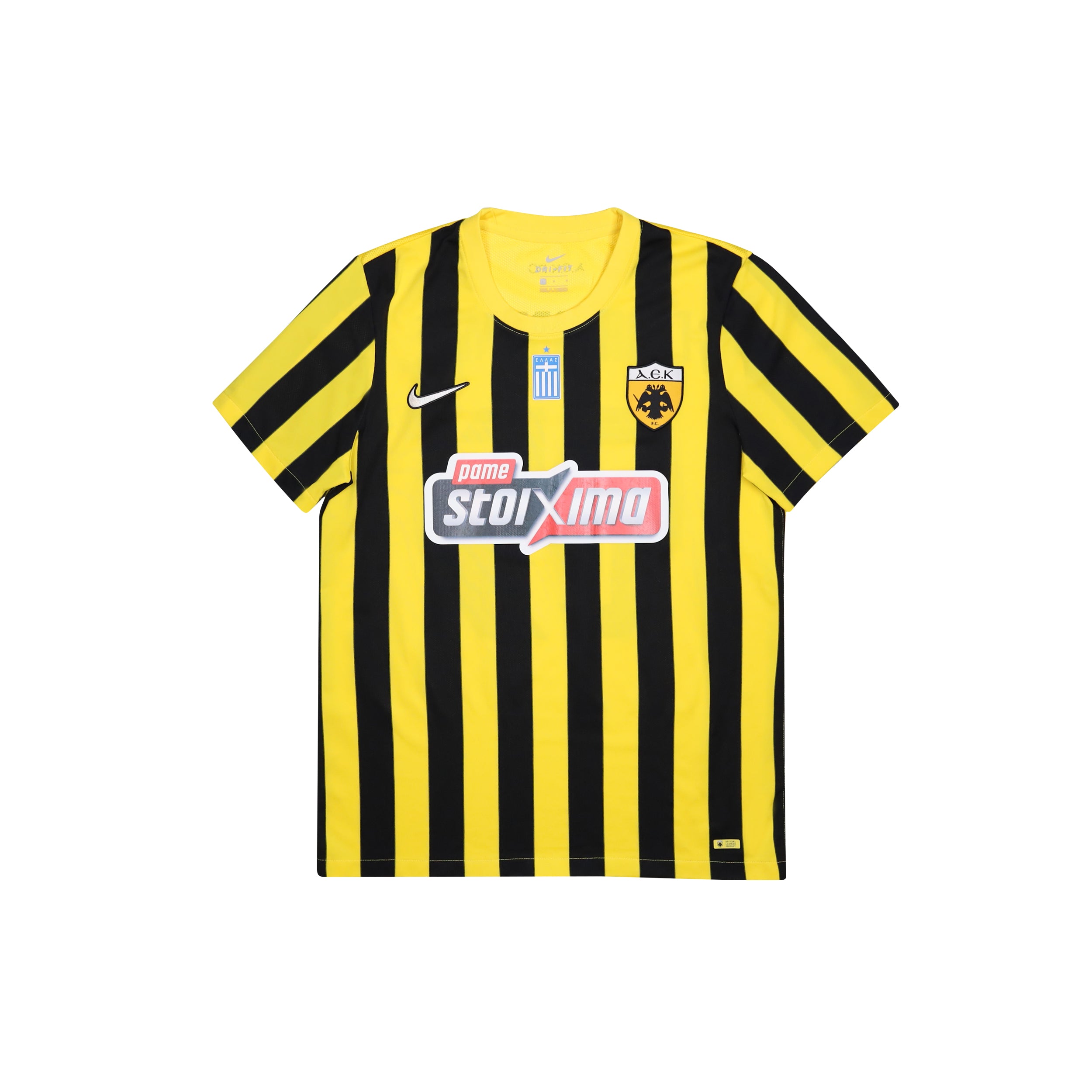 Excellent condition. Club crest and Nike swoosh are embroidered. Flag detailing, club sponsor and player name/number are all PolyFlex and heat applied. Shirt design elements are sublimated. No pulls or bobbles. Colours and stitching in excellent condition.