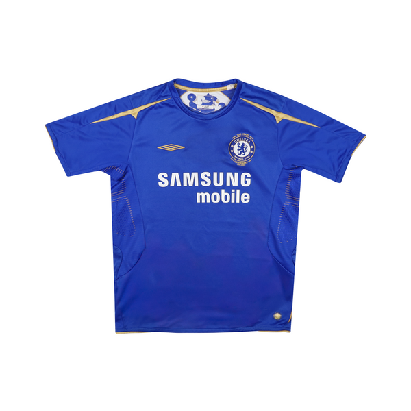 Created for the club's centenary, this classy Umbro design was only worn for one season before the club switched to Adidas. The gold accents celebrated the clubs title from the previous season and Jose Mourinho continued Chelsea's new found dominance by leading the Blues to a second consecutive title.