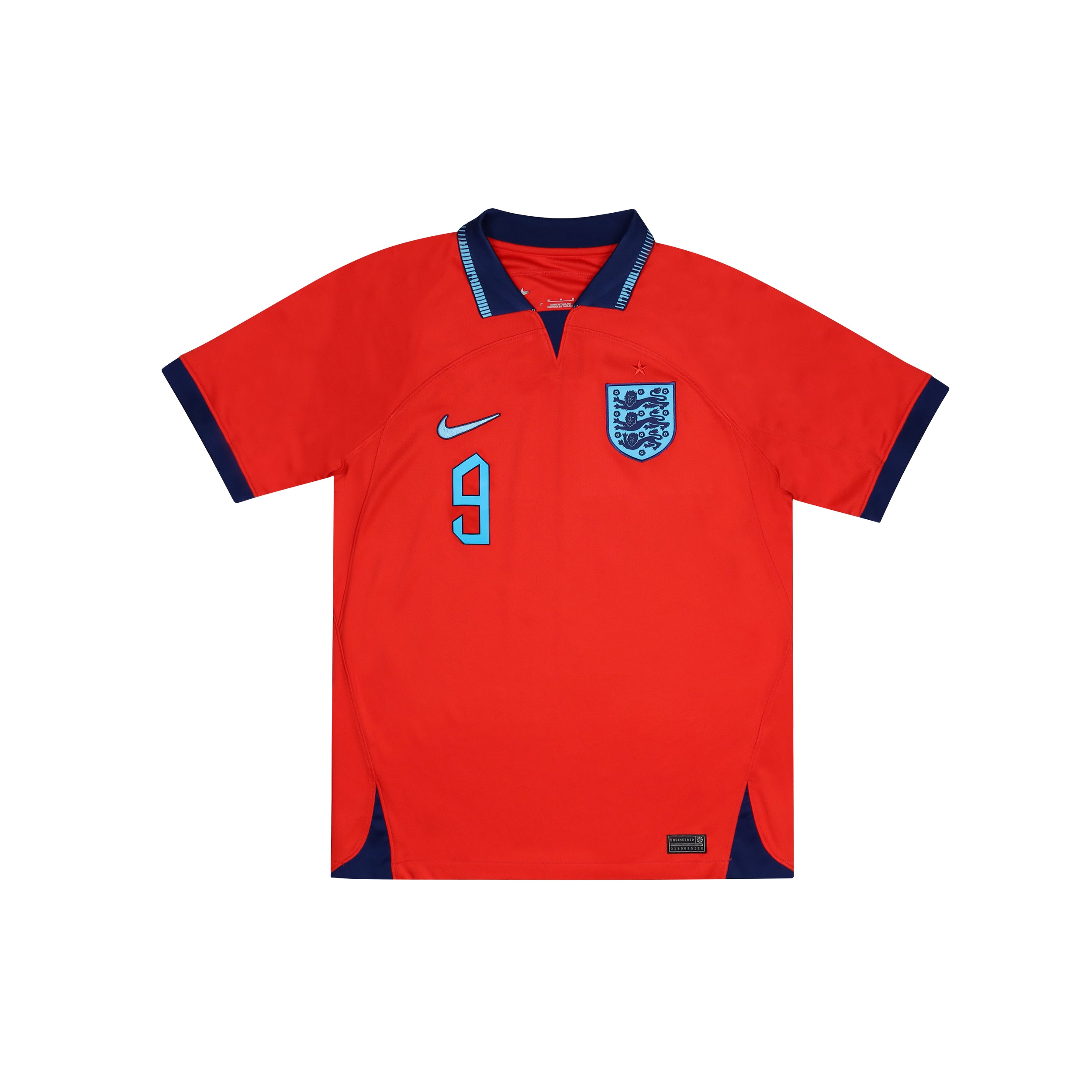 Worn by England at the 2022 World Cup where the team made it to the quarter finals before losing, 2-1. Both Marcus Rashford and Bukayo Saka shared the team's top scorer award with 3 goals each at the tournament.