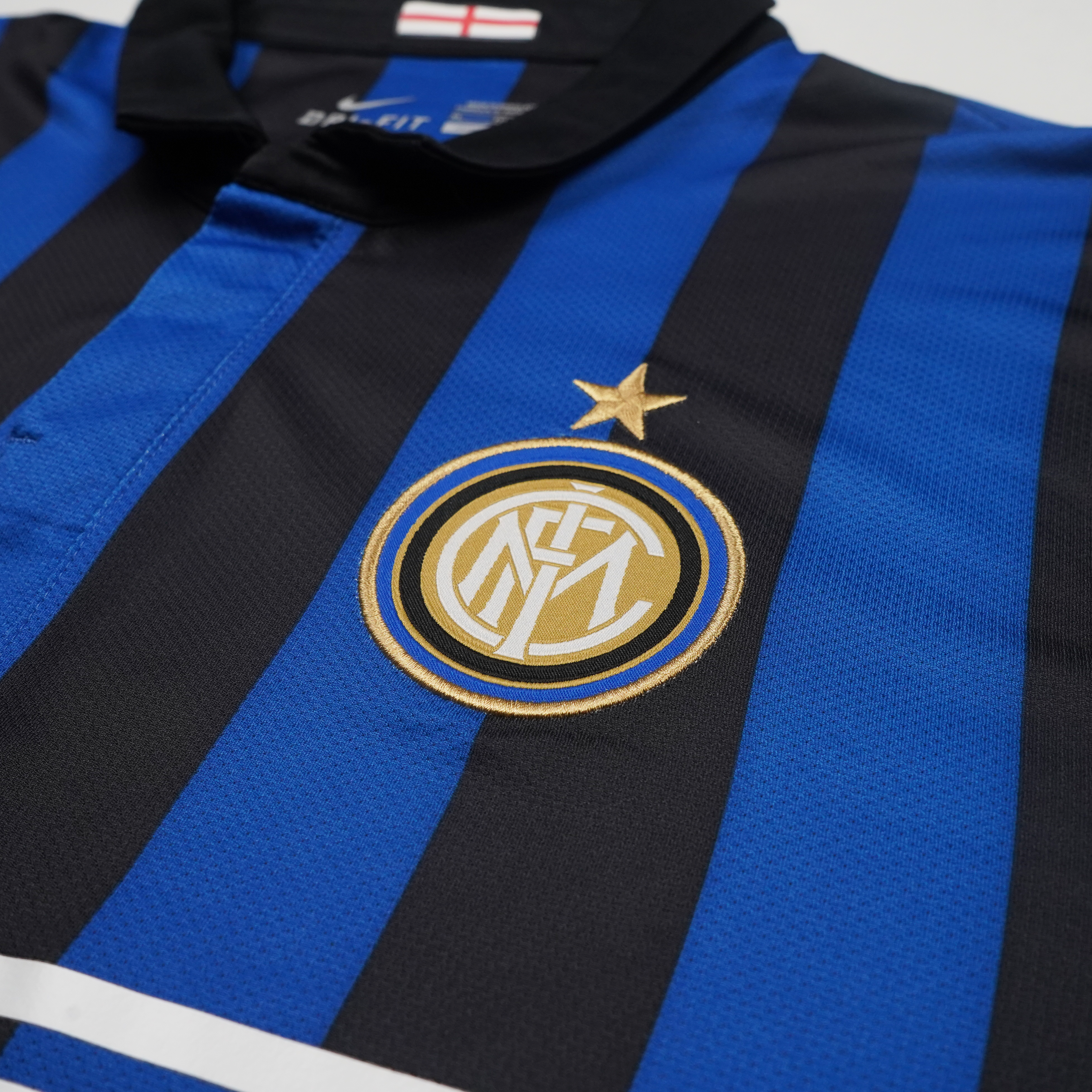Very good condition. Club crest, star detailing and Nike swoosh are embroidered. Sponsor and name/number are PolyFlex and heat applied. Few small bobbles across front of shirt and hole small hole to lower front. Colours and stitching in excellent condition.