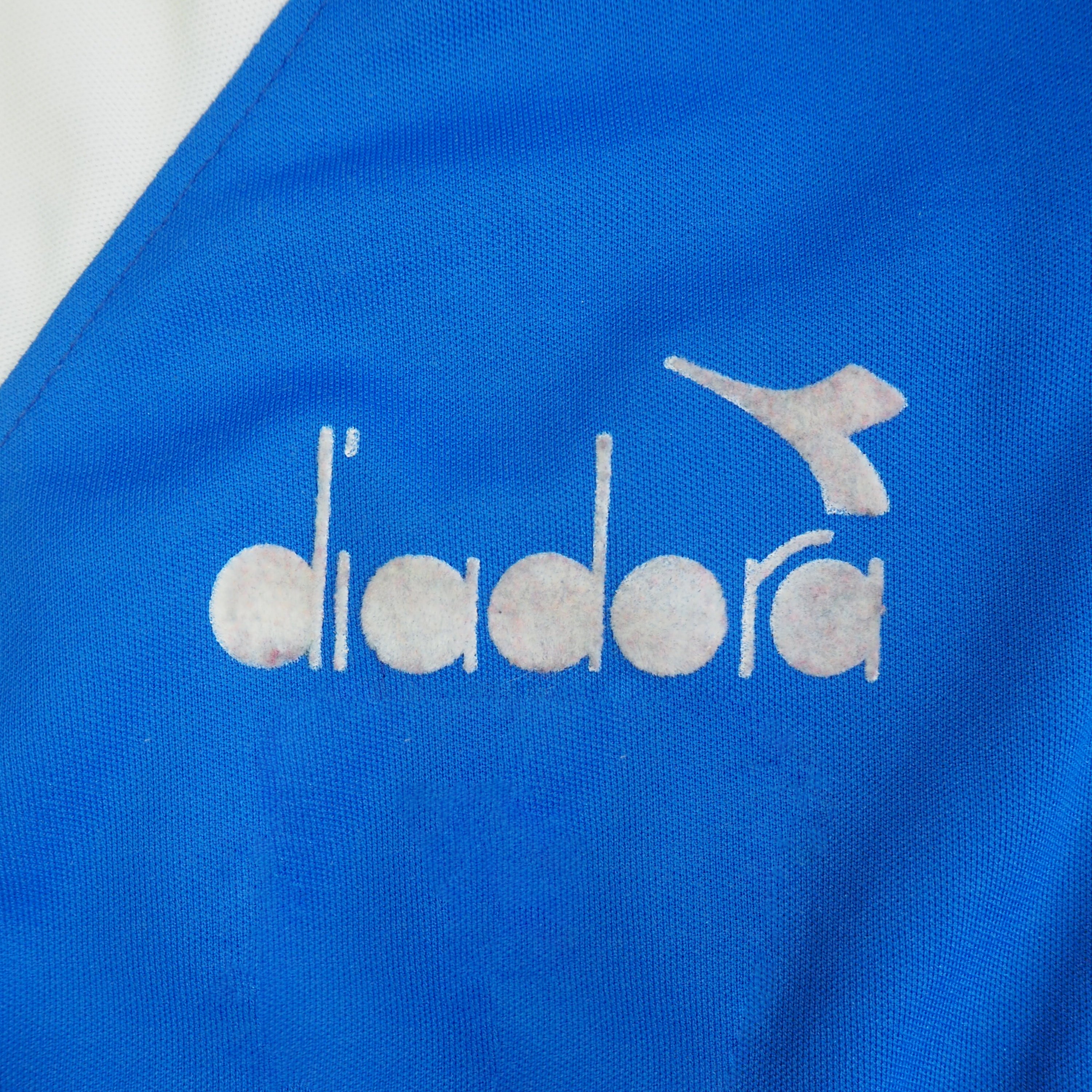 Very good condition. Federation crest is embroidered patch and stitched. Diadora logo is a flock with slight colour wear. Sleeve design has a few minimal pulls and cracking. Colours and stitching in excellent condition.