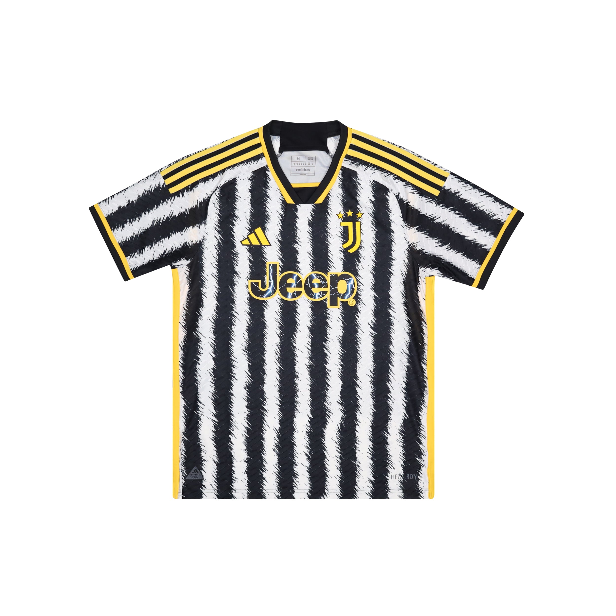 Excellent condition, HeatRDY version of shirt. Club crest, star detailing and Adidas logo are plastic, club sponsor and player name/number are PolyFlex, all are heat applied. Shirt design elements are sublimated. No pulls or bobbles. Colours and stitching in excellent condition.