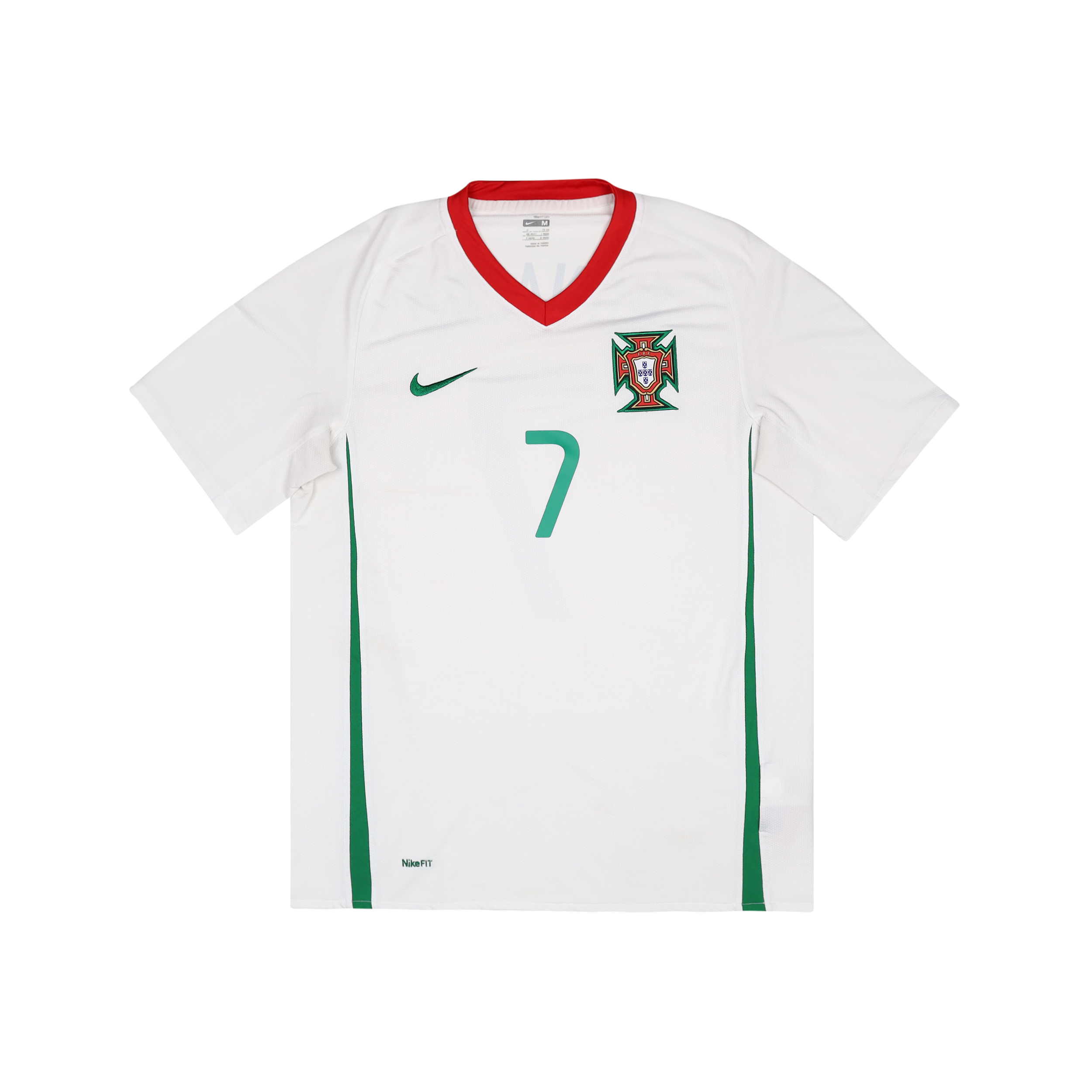 Worn by Portugal during the Euro 2008 campaign where they were knocked out in the Quarter Final stages by the eventual losing finalists. All 7 of the teams goals in the tournament were scored by different members of the squad, not surprisingly this was the most individuals of any team scoring in the whole tournament.