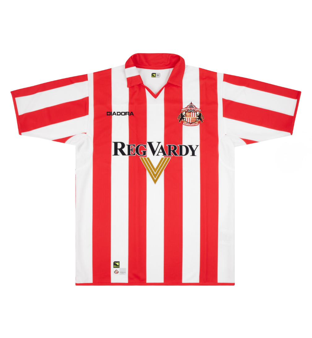 Worn as Sunderland were promoted to the Premier League as champions in 2004/05 under Mick McCarthy, securing a returning to the top flight after 2 seasons. Striker Marcus Stewart was the teams top scorer with 16 goals in all competitions.