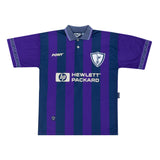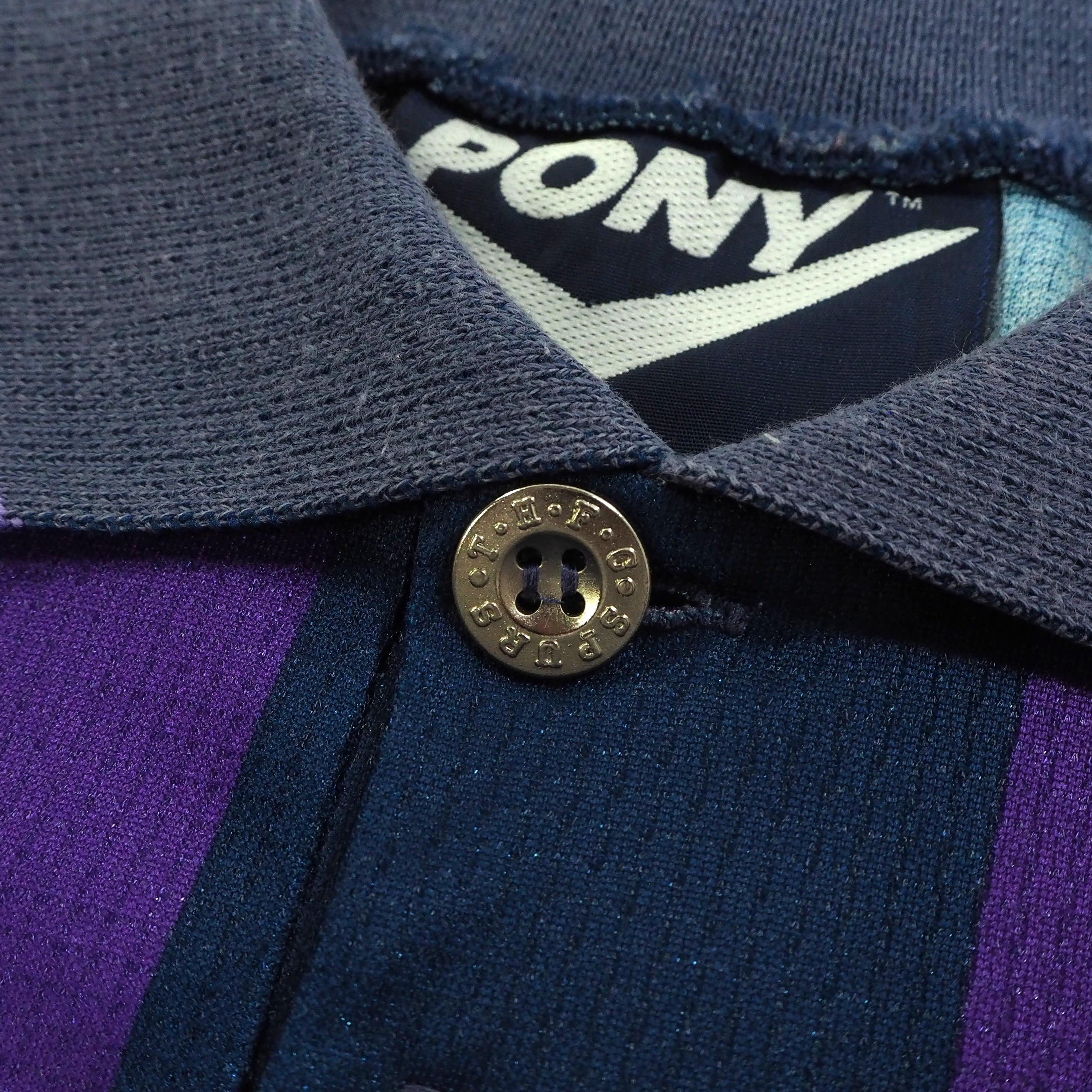 Excellent condition. Club crest is embroidered. Club sponsor, manufacturer logo and name/number are flock and heat applied. Small amount of pulls and bobbles across front of shirt. Colours and stitching in excellent condition.